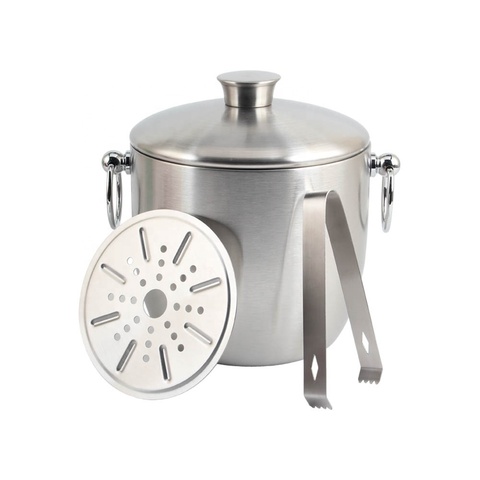 ถังน้ำแข็งสแตนเลสผนังสองชั้นหุ้มฉนวนพร้อมฝาตักที่คีบและที่กรอง