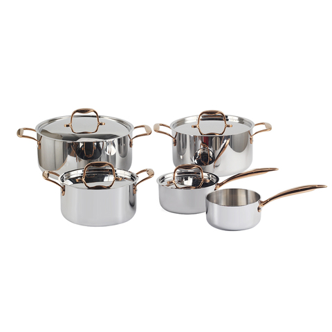 ชุดเครื่องครัวสแตนเลสพร้อมด้ามจับตามหลักสรีรศาสตร์หม้อและกระทะระดับพรีเมียมสำหรับเชฟที่บ้าน