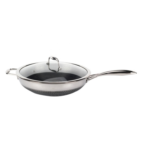 กระทะสแตนเลสแบบนอนสติ๊ก3ชั้นเครื่องครัวแบบมืออาชีพสำหรับเหนี่ยวนำก๊าซและไฟฟ้า