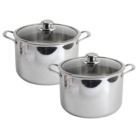 เครื่องครัวเหนี่ยวนำสำหรับเตาทั้งหมดหม้อสต็อกสแตนเลสสามชั้นพร้อมฝาปิดมองเห็นได้